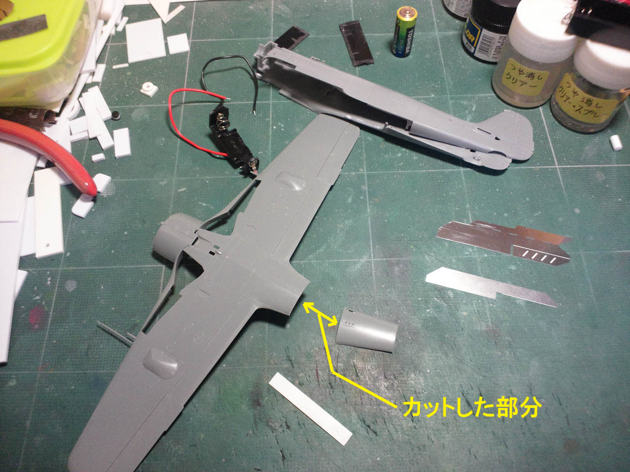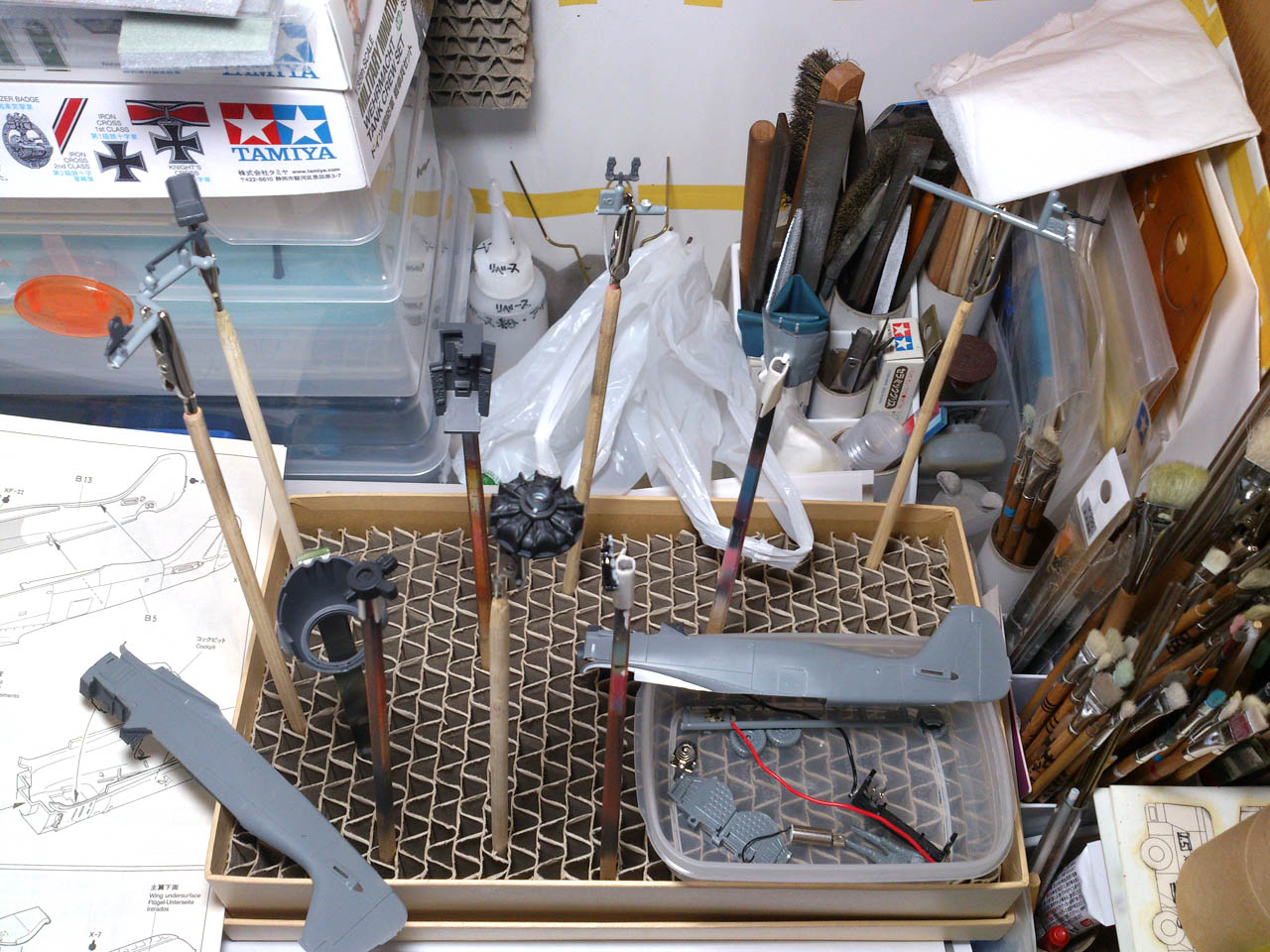 一周りして、ようやくタミヤ Fw190A-3 に戻ってきました。主翼と一体になっている機銃やピトー管はそのまま使おうと思い、銃口は