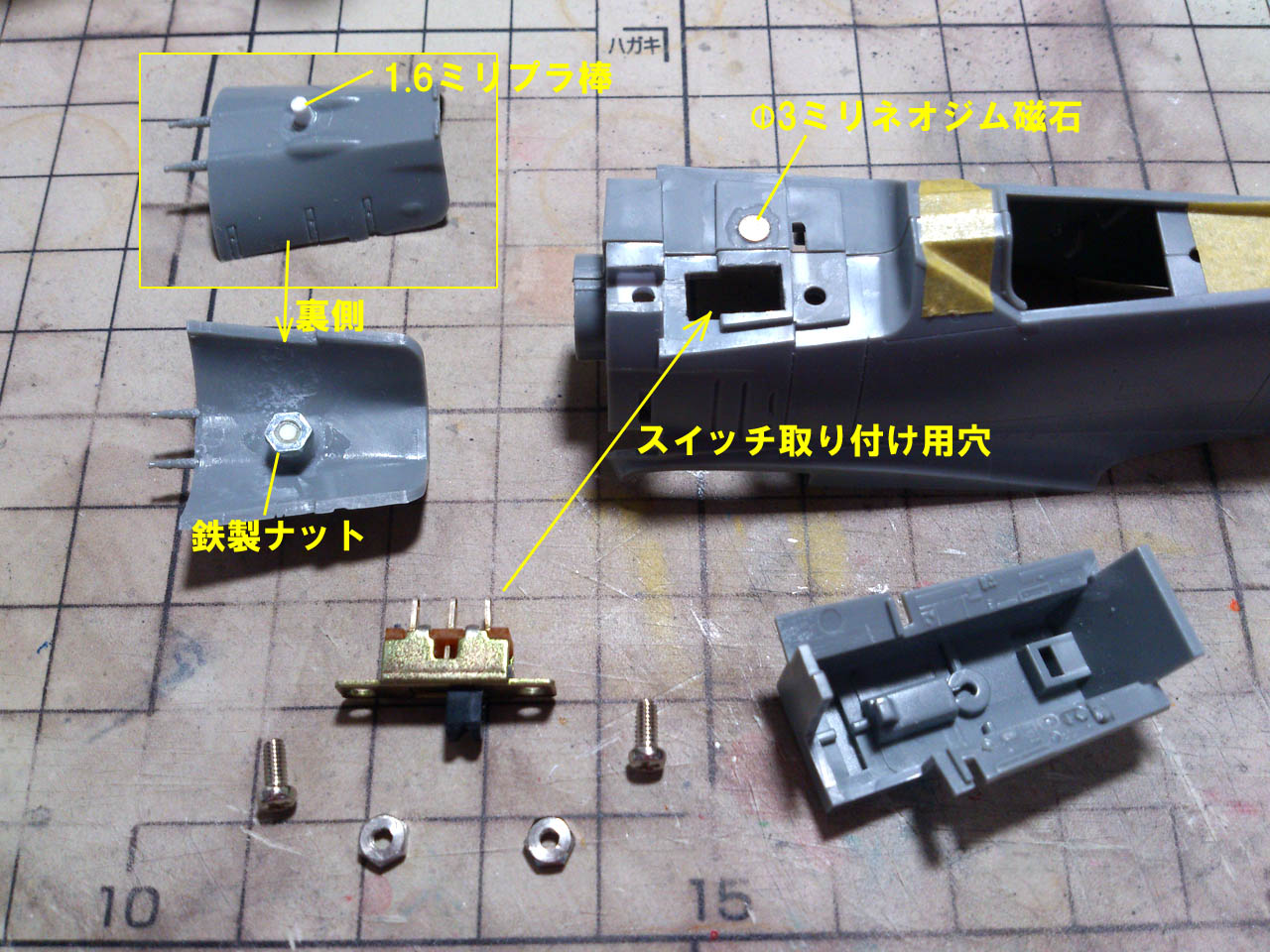 脚収納部と主翼上下は既に組み立てていたので、これを修正するのは諦めて、