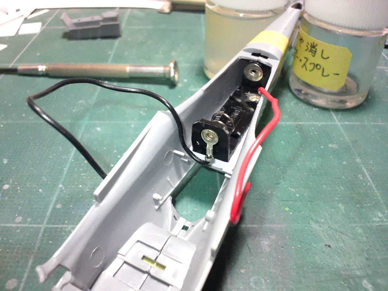 プロペラ回すのに、電池受け・スイッチ・モーターのリード線のハンダ付けや